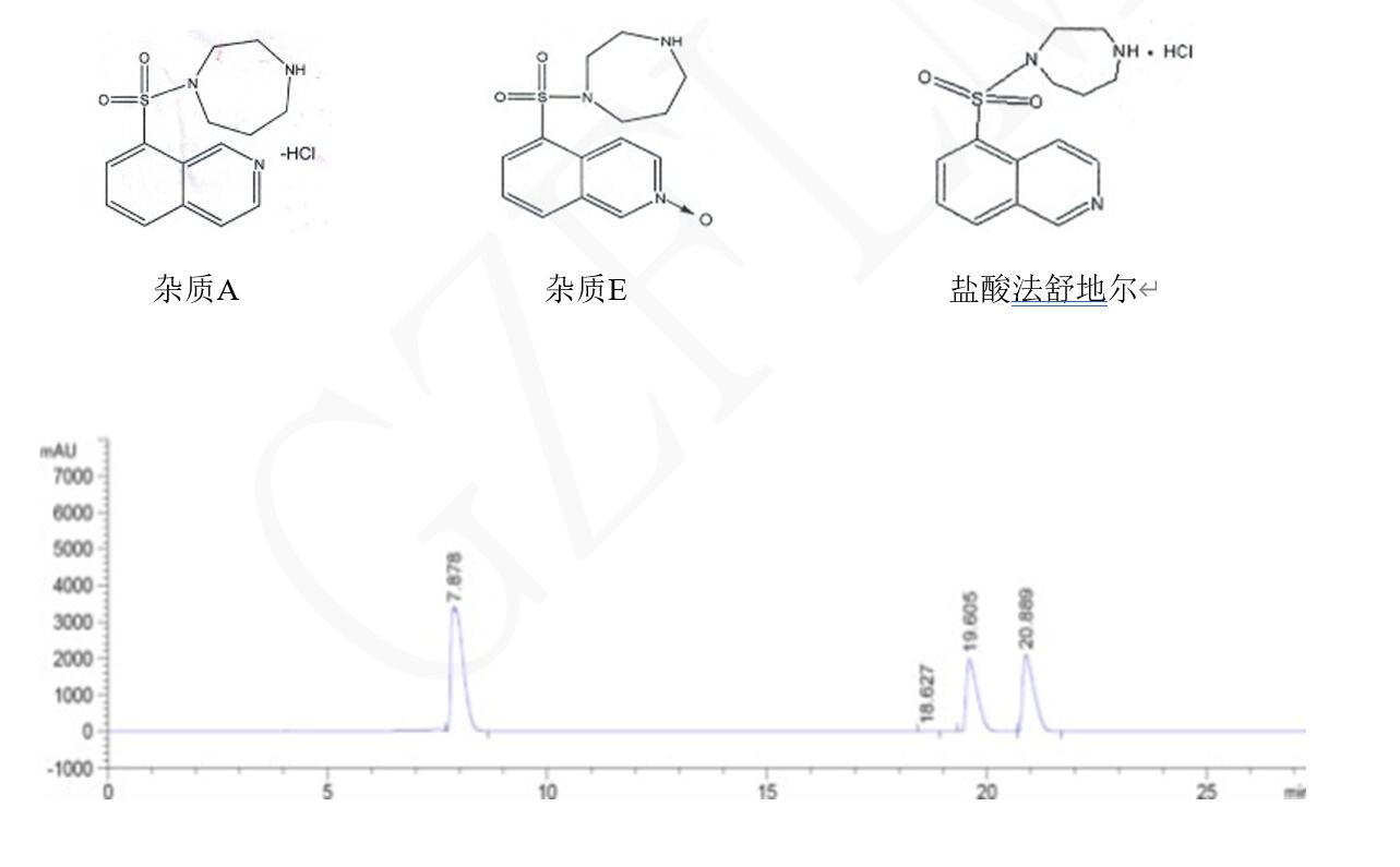 液相色譜柱鹽酸法舒地爾與雜質(zhì)A、E的色譜分離